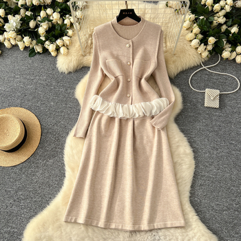 Conjunto de 2 piezas informal para mujer, TOP tipo túnica y retazos, conjunto de Vestido tejido con volantes, ropa al por mayor